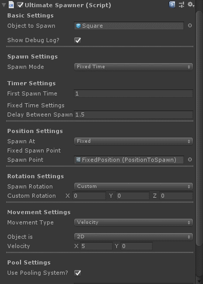 You configure it as you want, and UltimateSpawner will add a plugin script to the object during spawn. This plugin script checks for a rigidbody or a rigidbody2D. Don't forget to add it to your object